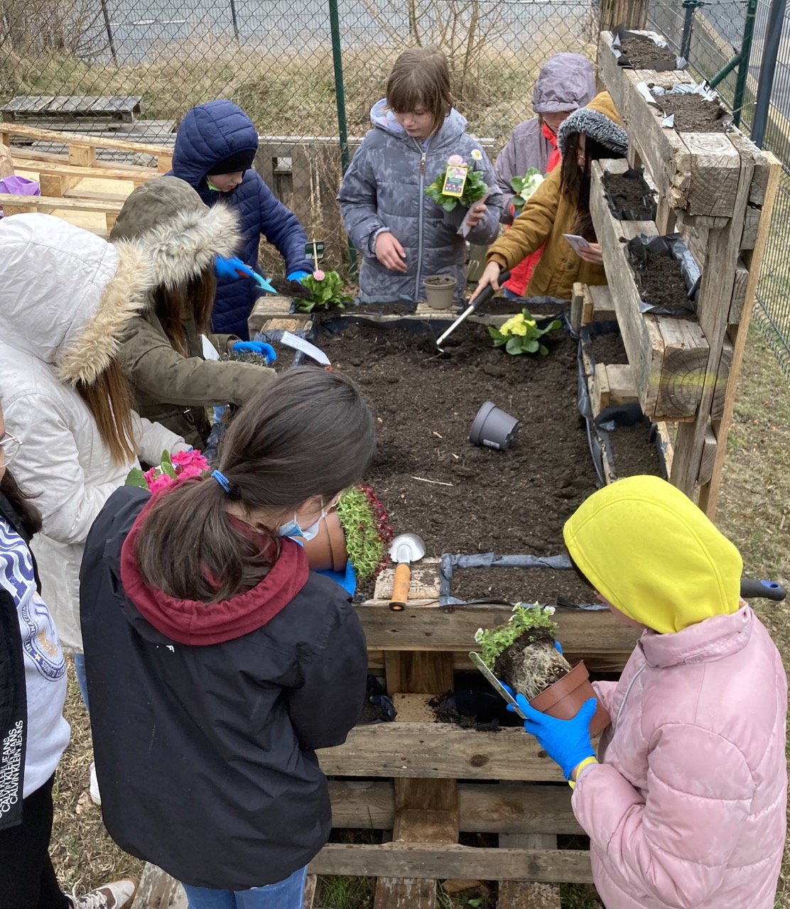 Zuerst wurden von den Schülerinnen und Schülern Pflanzen-Etikette erstellt. Es musste herausgefunden werden, ob die Pflanzen es lieber sonnig oder schattig mögen und wie die Pflanzen gepflegt werden müssen.