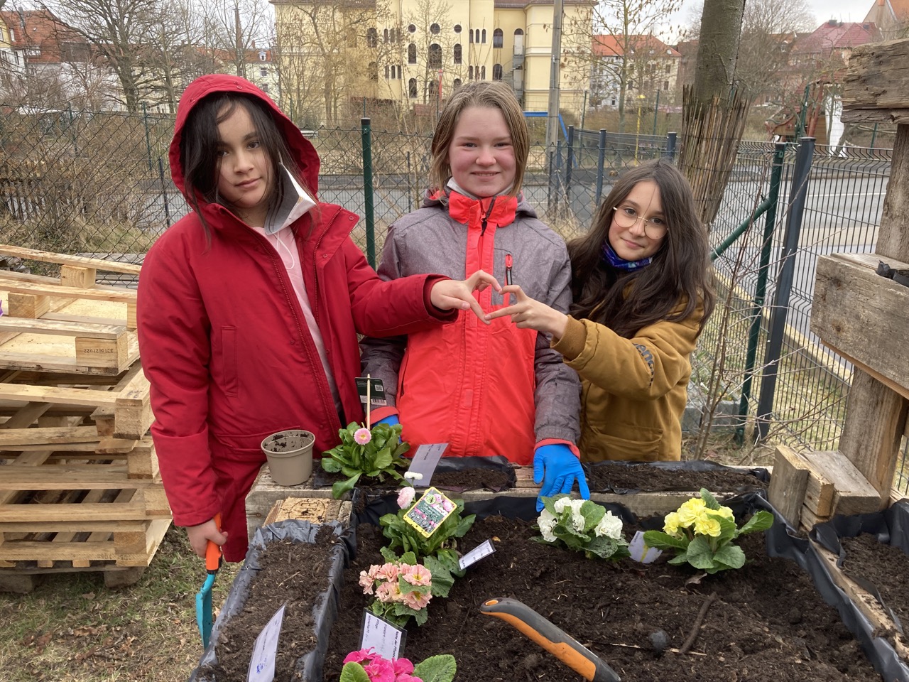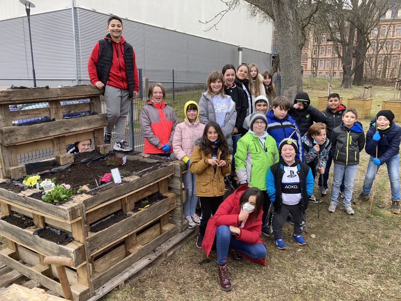 Ein besonderer Dank geht an Frau Bönisch und Frau Kallensee, die das Projekt mitbetreut haben sowie an die Projektgruppe der 10b, die das tolle Hochbeet gebaut hat!