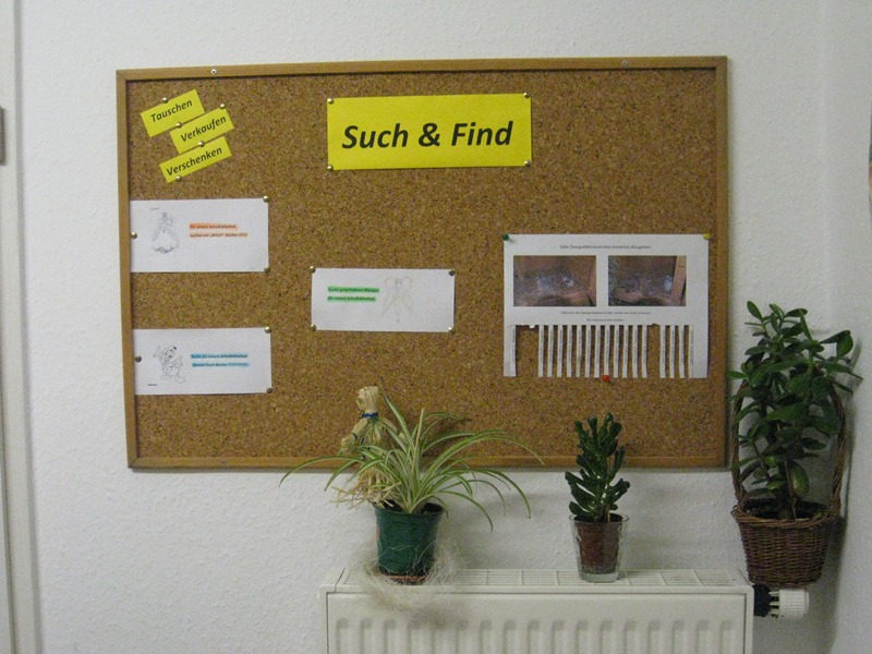 Jeder Schüler, der etwas verschenken, tauschen oder z.B. bestimmte Ersatzteile für sein Fahrrad sucht oder für seine Sammlung noch fehlende Teile braucht, der hat jetzt in der Schulbibliothek die Gelegenheit dieses anzubieten.