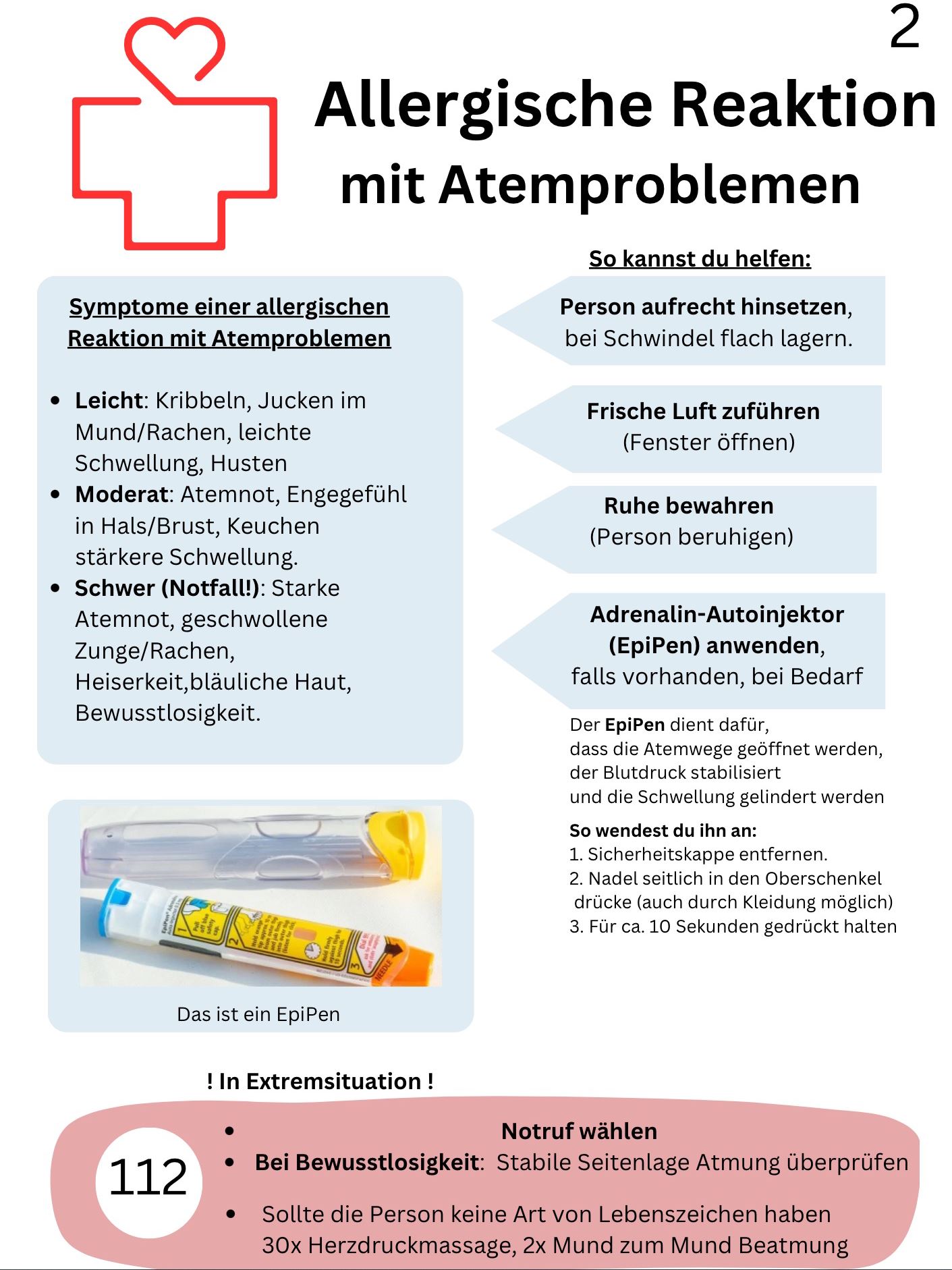 Die Kärtchen sollen nicht nur im Notfall als schneller Wegweiser dienen, sondern auch präventiv zur Aufklärung und Sensibilisierung beitragen. Sie wurden so gestaltet, dass sie für alle verständlich sind – egal ob Schüler, Lehrkraft oder externe Person. Komplexe medizinische Inhalte wurden in klare, handhabbare Handlungsschritte übersetzt.