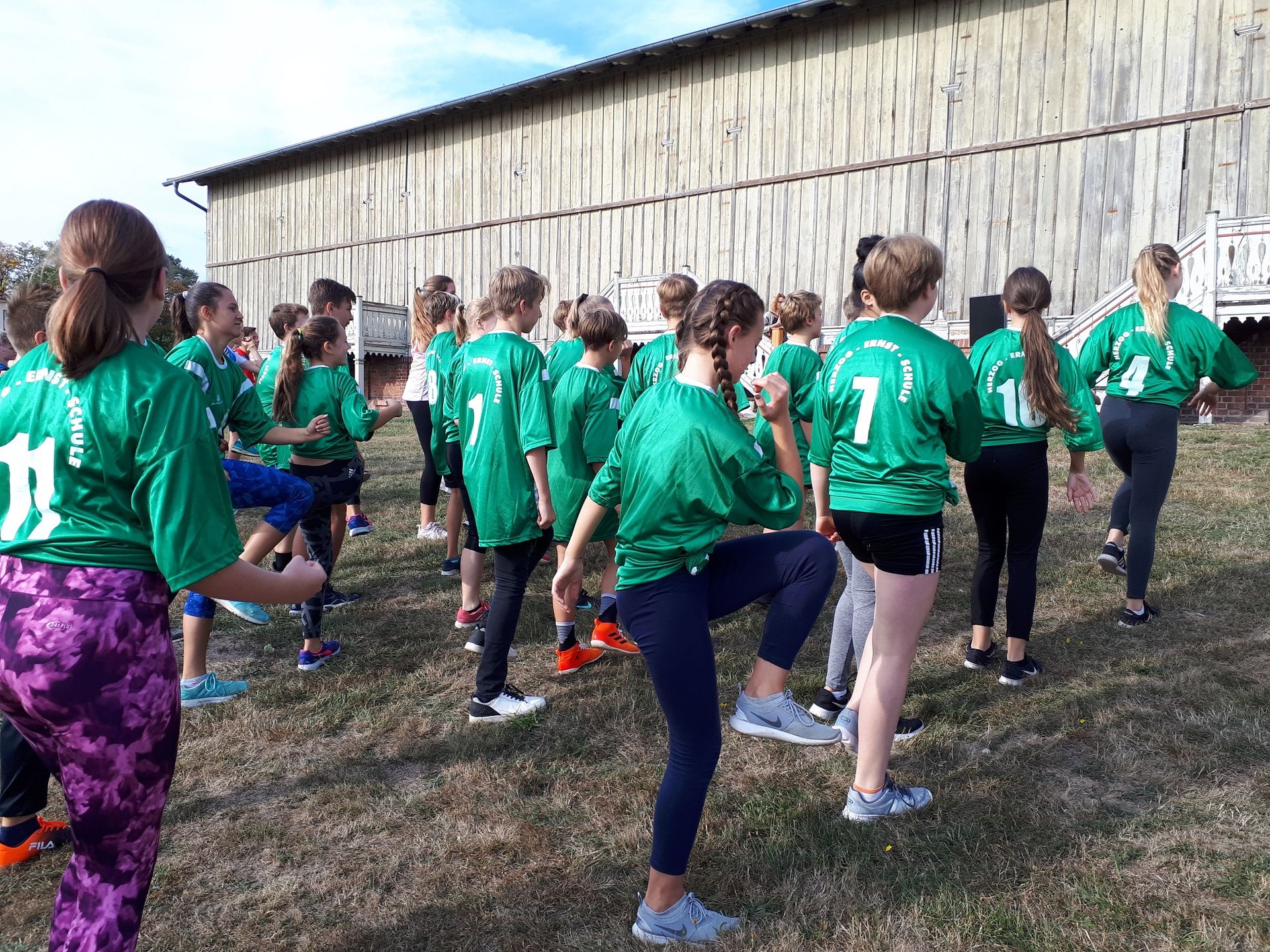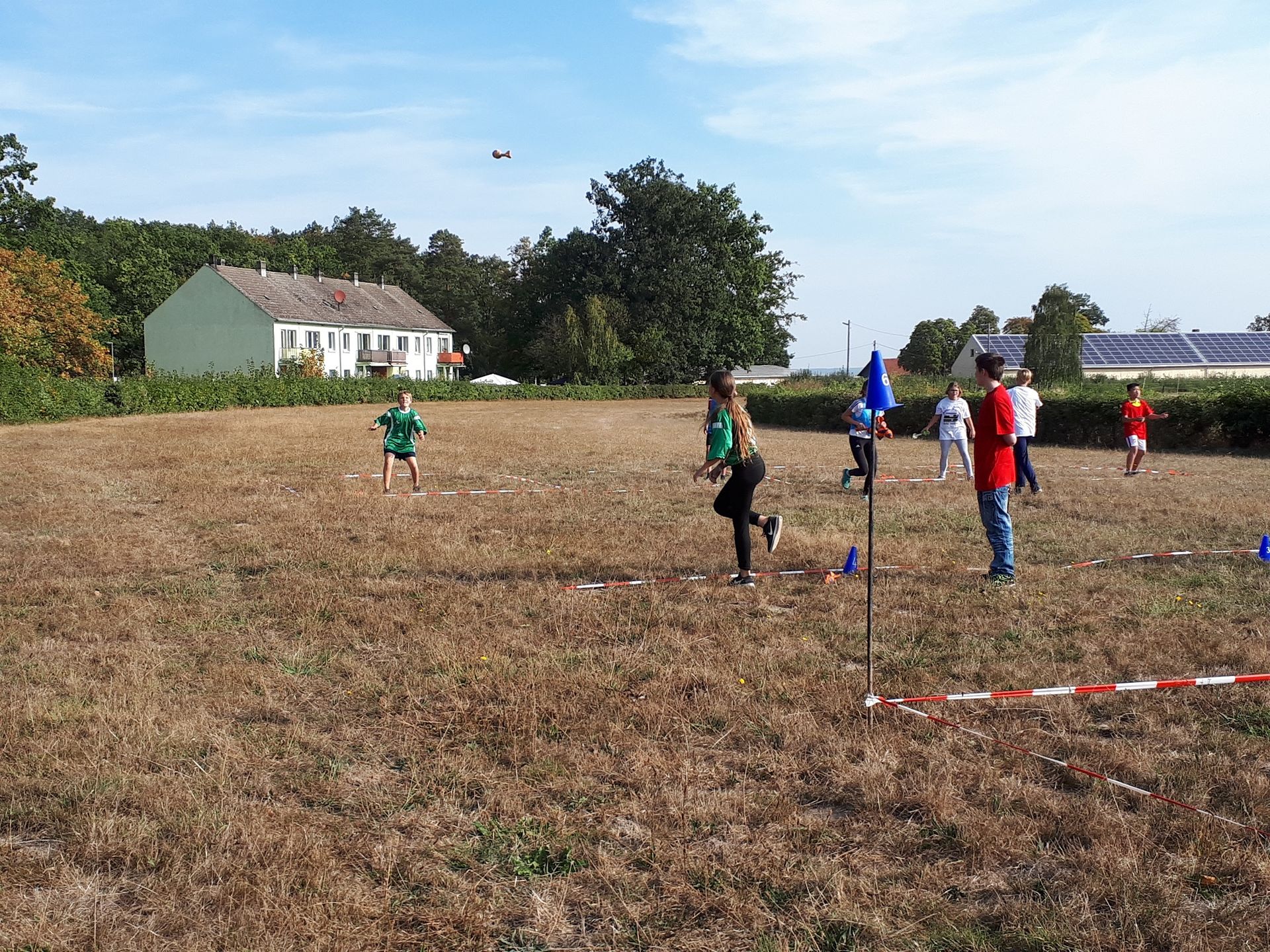 Nach einer allgemeinen Begrüßung und dem einheitlichen Einkleiden unserer Schüler ging es ans Einteilen in Gruppen. Ein Schüler-Team, das aus zehn Schülern unserer Schule bestand, bereitete sich auf den Biathlon von. Hier musste in Paaren gelaufen, gesprungen, geworfen und gefangen werden. Durch unsere gute Vorbereitung konnten wir hier als zweite Mannschaft über die Ziellinie laufen. Das andere Team (die anderen zehn Kids unserer Schule) konnten bei der Fun-Disziplin „Wassertragen“ ihr Können unter Beweis stellen. Wenn nicht ein „Umkipper“ dafür gesorgt hätte, dass die KGS-Kids den Rasen wässern, hätten wir hier gewinnen können. Schade… Dann wurde gewechselt: Die Biathleten gingen zum spaßigeren Teil des Wettkampfes über und das Wasser-Team stellte nun die Läufer für den Cross-Lauf. Es musste 1,6 km über die Pferderennbahn gelaufen werden, quasi über Stock und Stein. Auch hier schlugen wir uns in den beiden Durchgängen gut.