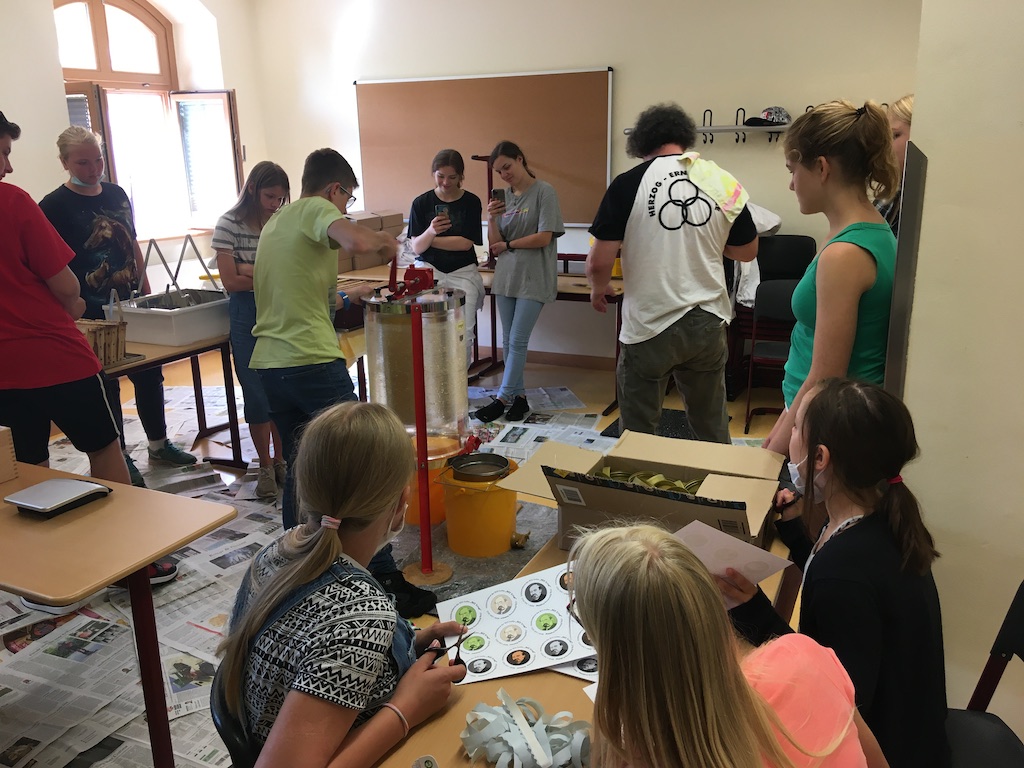 In der ersten Woche der zurückliegenden Sommerferien konnten Schülerinnen und Schüler unserer Schulimkerei gemeinsam mit Herrn Wiemer und Herrn Schmidt Honigwaben entdeckeln, den Wassergehalt des Honigs bestimmen, den Honig aus den Waben schleudern, und in etikettierte Gläser abfüllen. Unterstützt wurde die Gruppe von unseren ehemaligen Schülerinnen Michelle Sandow und Aliya Bauer. Ein großes Dankeschön an alle Beteiligten an dieser Stelle. Natürlich konnte der Honig auch verkostet werden. Er schmeckt wie immer unglaublich lecker. Am Montag, den 27.09. und am Dienstag, den 28.09. wird der frische Honig im Eingangsbereich der KGS Gotha direkt vor den Elternabenden zum Verkauf angeboten.