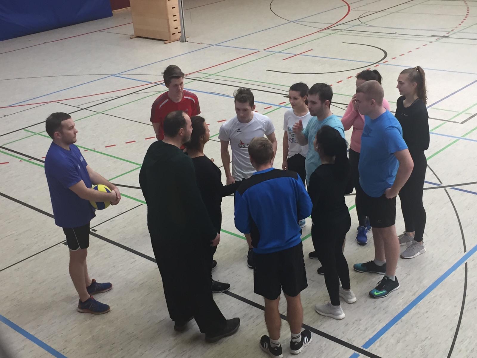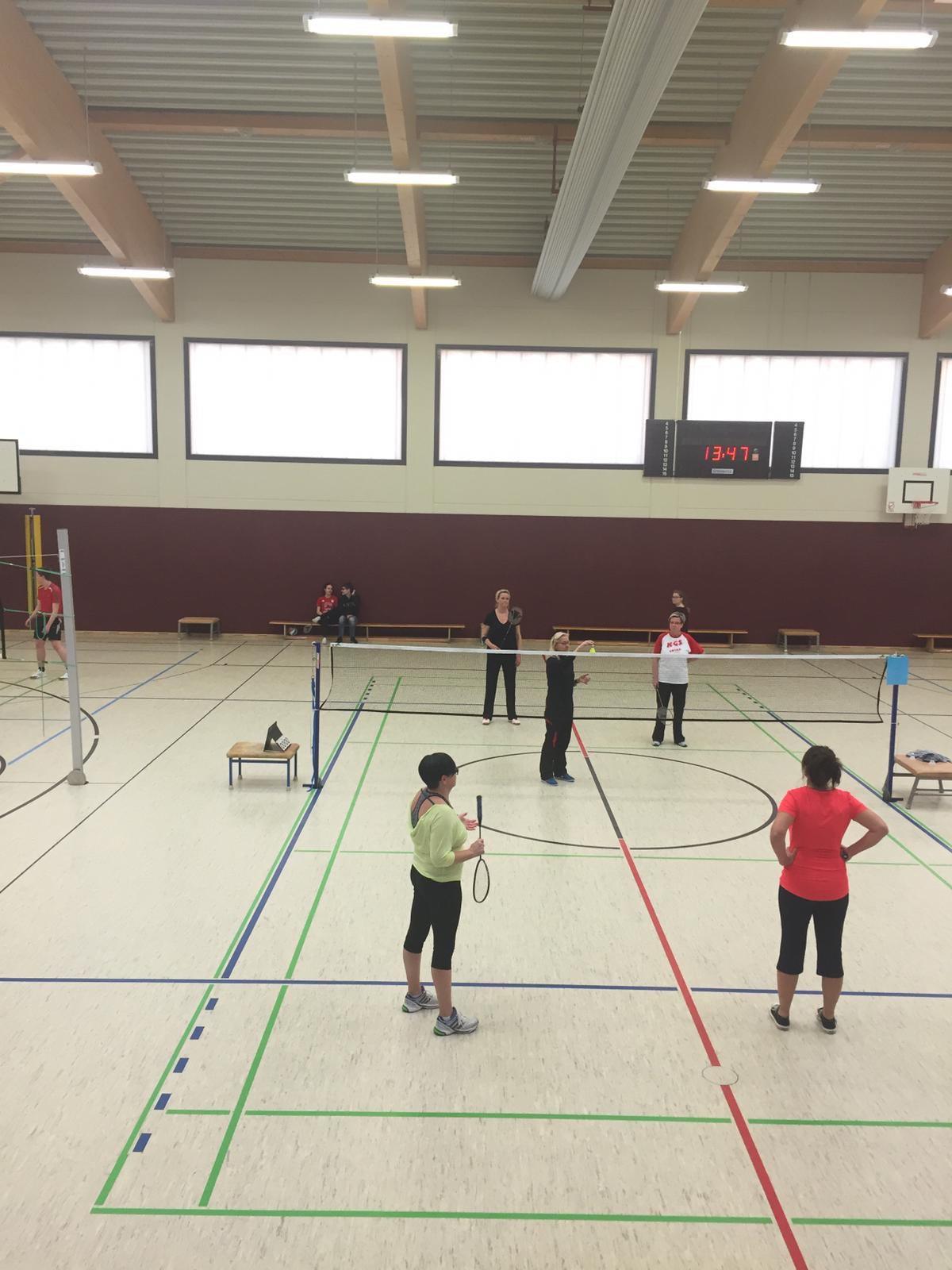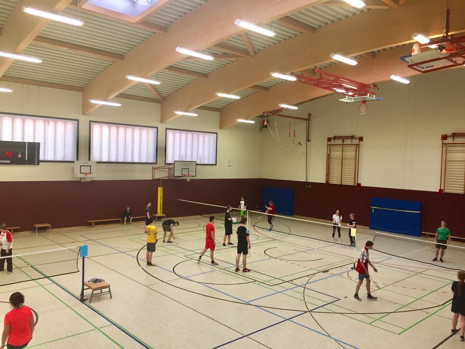 Nach der fünften Stunde ging es in unserer Turnhalle los. Die Sportler erwarteten die Aufbauten für ein Volleyballspiel und für vier Felder Badminton. Nach der kurzen Eröffnung und der Verteilung auf vier Staffeln starteten die ersten Partien auf den Feldern. Auf dem Volleyballfeld begann die spannende Begegnung zwischen dem Schüler- und dem Lehrerteam, das von Frau Bonsack, Frau Krause, Frau Wollenhaupt, Herrn Kath, Herrn Skaba und Herrn Stephan gestellt wurde. Der 3:0-Sieg der Lehrer ließ die Stimmung bei den Schülern noch lange nicht sinken, sodass nach kurzer Verschnaufpause in durchmischter Besetzung fleißig weitergespielt wurde.