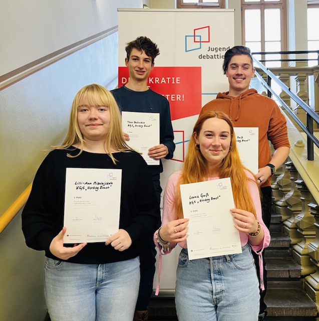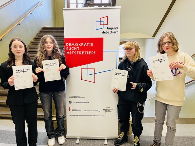 Seit über zwanzig Jahren fördert „Jugend debattiert" sprachliche und politische Bildung sowie Meinungs- und Persönlichkeitsbildung. In den letzten drei Jahren gehört es nun auch zu den festen Arbeitsgemeinschaften an unserer Schule und der damit verbundene Schulwettbewerb auch zu den festen Terminen im neuen Kalenderjahr.