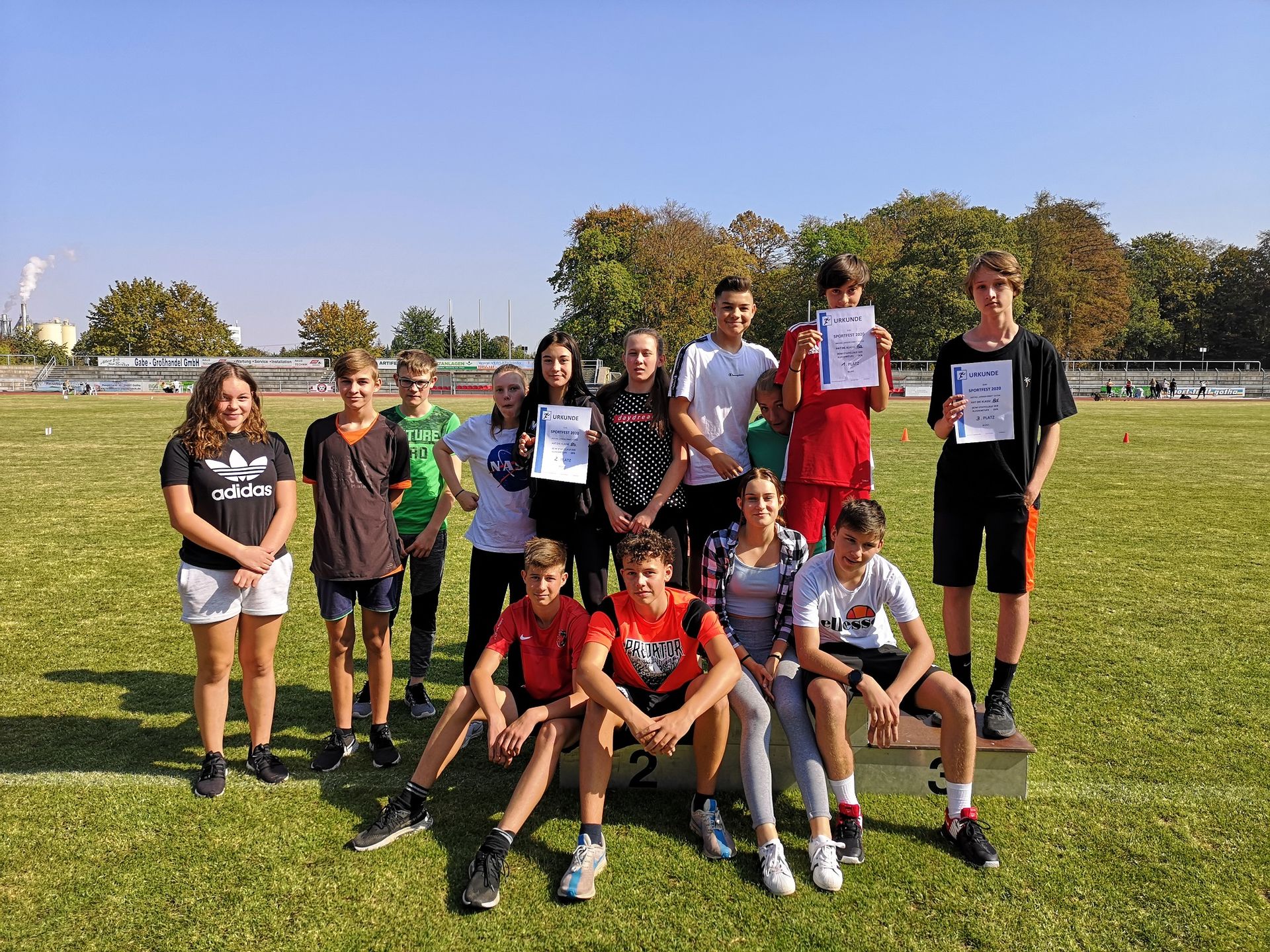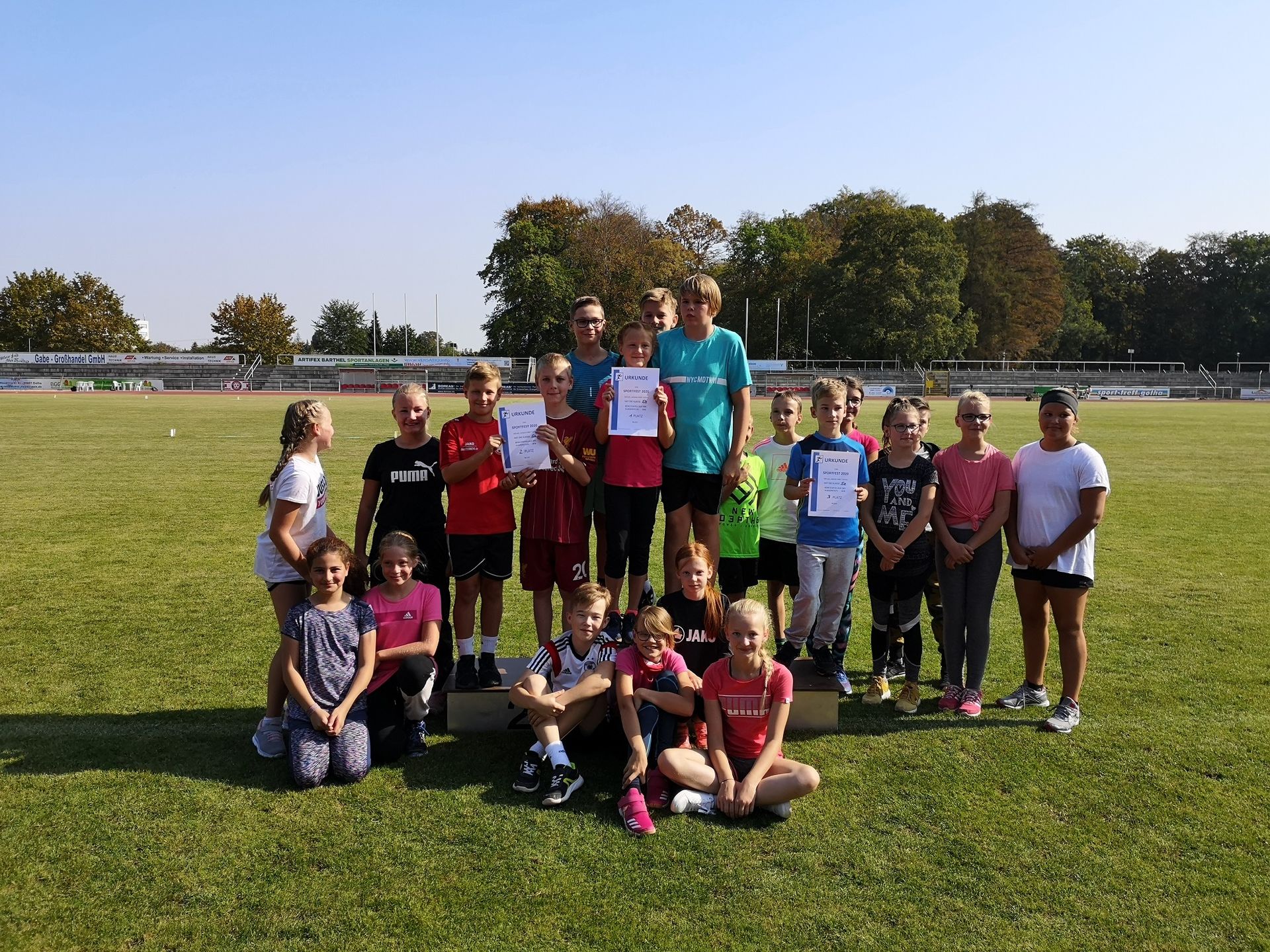 Getreu nach dem Motto „Sport (macht) frei“ fand unser diesjähriges Sportfest im Volksparkstadion unter wolkenfreien Himmel mit zahlreichen Sporttalenten statt. In den Disziplinen Wurf, Sprung und Sprint konnten alle Schüler der KGS Bestleistungen erzielen – der eine mehr, der andere mit (etwas) Luft nach oben. Aber jetzt habt ihr wieder ein Jahr Zeit, eure kleinen Blessuren zu kurieren und eure leichtathletischen Sportqualitäten weiter zu verbessern, um im nächsten Jahr neu anzugreifen. Vielleicht auch mit eurer Klassenstaffel, um am Ende auf das Siegertreppchen bzw. Siegerfoto zu gelangen.
