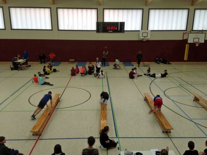 Am Dienstag, dem 05.02.2019 und Mittwoch, dem 06.02.2019, wurden die sportlichsten Schülerinnen und Schüler der jeweiligen Jahrgangsstufen ermittelt. In den vier Disziplinen Druckpass, Hockwende, Schlussweitsprung und Situps erbrachten die aktiven Schülerinnen und Schüler tolle Leistungen. Die Disziplinen, welche vorher im Unterricht eingeübt wurden, forderten das gesamte Bewegungsrepertoire der Lernenden, so dass mit Fug und Recht von der sportlichsten Schülerin und dem sportlichsten Schüler der KGS gesprochen werden kann. Die von der Fachschaft Sport organisierte Veranstaltung wurde tatkräftig von den Schülerinnen und Schülern der 11. Klasse unterstützt – vielen Dank dafür.