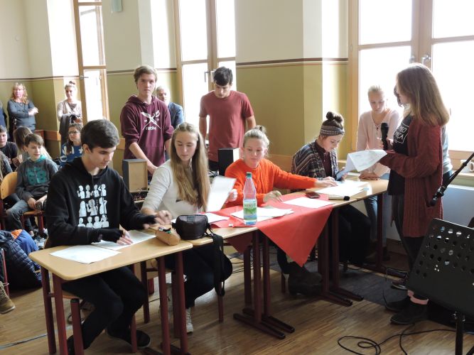 Eine sehr schöne Tradition ist der jährliche Talentewettstreit unserer Schule. Kinder und Jugendliche aller Jahrgänge stellen ihren Mitschülerinnen und Mitschülern ihre kreativen Begabungen in vielfältigen künstlerischen Bereichen vor und werden auch aus deren Reihen bewertet. Die Jury hatte es auch in diesem Jahr nicht leicht - eigentlich hätten alle Akteure, wie z.B. Publikumsliebling Robby Jung oder Rapper Tony Kopp oder ... einen Preis verdient.