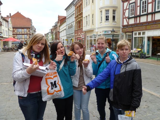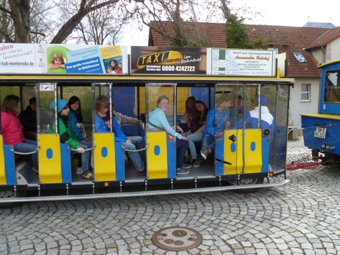 Vom 25.04. - 27.04 fuhren wir, die Klasse 7b auf Klassenfahrt nach Mühlhausen. Zuerst konnte sich niemand so recht mit dem Gedanken „Klassenfahrt Mühlhausen“ anfreunden, doch das sollte sich noch ändern. Als wir mit dem Zug am Mittwoch ankamen, konnten wir nicht sofort in unser Zimmer und haben erst einmal einen Stadtbummel gemacht.