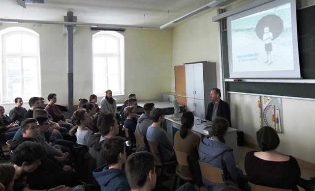Seine Intention bezog die Zuhörer mit ein: „Wir hier in diesem Raum sind nicht verantwortlich für den Holocaust und dürfen uns dies auch nicht einreden lassen. Aber wir sind verantwortlich für den Umgang mit der Vergangenheit.“ Auch unsere Schule stellt sich dieser Verantwortung.