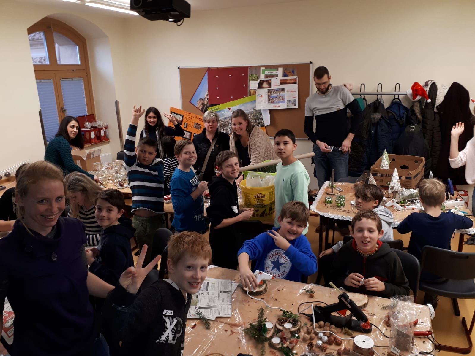 Am 03.12.2018 veranstaltete die Klasse 5a ihre diesjährige Weihnachtsfeier. Wir Schüler konnten an verschiedenen Stationen basteln und backen. Frau Wipprich, Frau Creutzburg, Frau Schröder und Annalena Schröder haben mit uns Weihnachtsbäume aus Stoff, Weihnachtsdeko in verschiedenen Gläsern, Engelchen und Weihnachtssterne gebastelt.