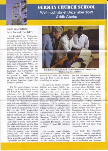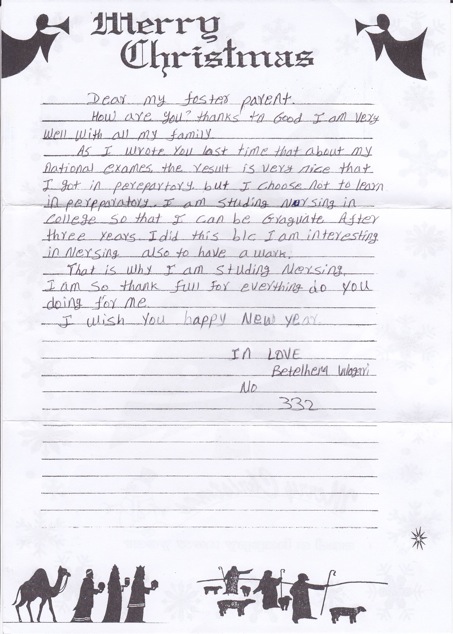 Anfang Januar erreichte mich ein Brief von unserem Patenkind in Äthiopien, über den ich mich sehr gefreut habe.