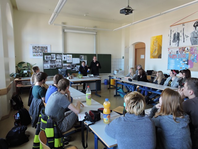 Es war eine ganz besondere Geschichtsstunde im eA- Kurs A16/ 17 der KGS - nicht weil sie von einem außerschulischen Gast gehalten wurde, auch nicht, weil sie auf Englisch stattfand. Mit Yonati Shlezinger aus Israel hatten die Schülerinnen und Schüler eine Zeitzeugin, die über das Schicksal ihrer aus Gotha stammenden und von den Nazis vertriebenen Familie berichten, die über den Umgang mit dem Holocaust zwischen der Generation der Betroffenen und ihren Kindern erzählen und die über die aktuelle Situation im Nahen Osten informieren konnte. Unterstützt wurde sie dabei von ihrem Ehemann und von Helmut Rieth, der die Familie während ihres Aufenthalts in Gotha betreut.