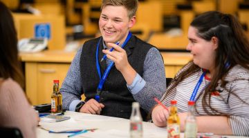 Im Plenarsaal des Thüringer Landtages nahmen zwei Schüler der Schülervertretung an einem Workshop zur Verfassung des Freistaats Thüringen teil.