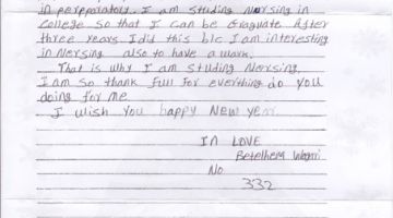 Anfang Januar erreichte mich ein Brief von unserem Patenkind in Äthiopien, über den ich mich sehr gefreut habe.