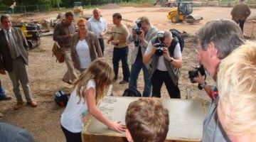 "Oh happy day", sangen Franziska Gorff und Sarah Lemke aus der Klasse 10d anlässlich der Grundsteinlegung für den Turnhallenneubau der Kooperativen Gesamtschule Herzog Ernst.